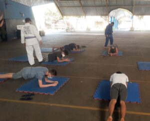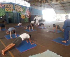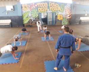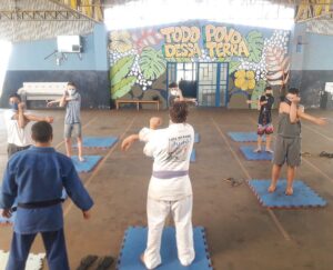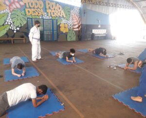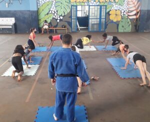 Nesta primeira aula, foi realizado um treino com a turma da escola Emeb Esther Vianna, através de nosso Sensei Felipe Galina, onde foi realizado alongamento e alguns treinos de execução de movimentos do Judô.